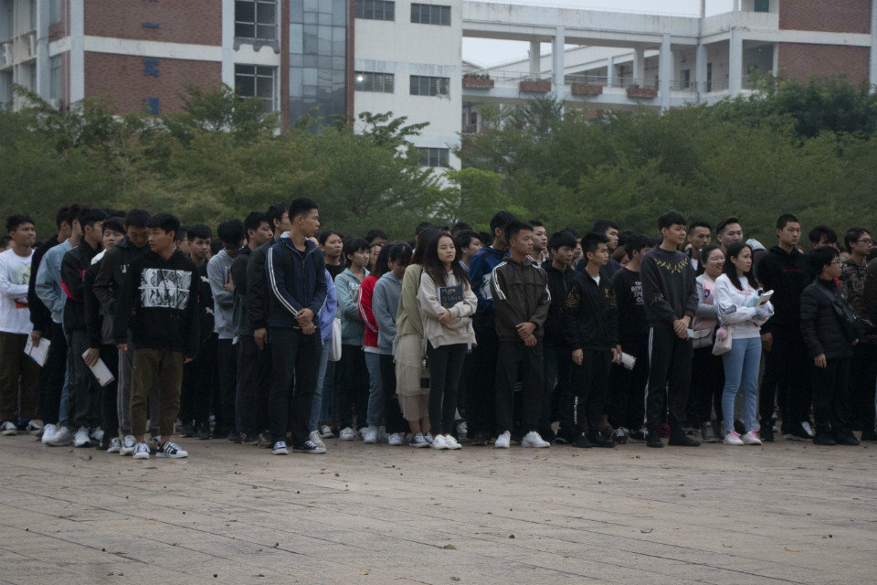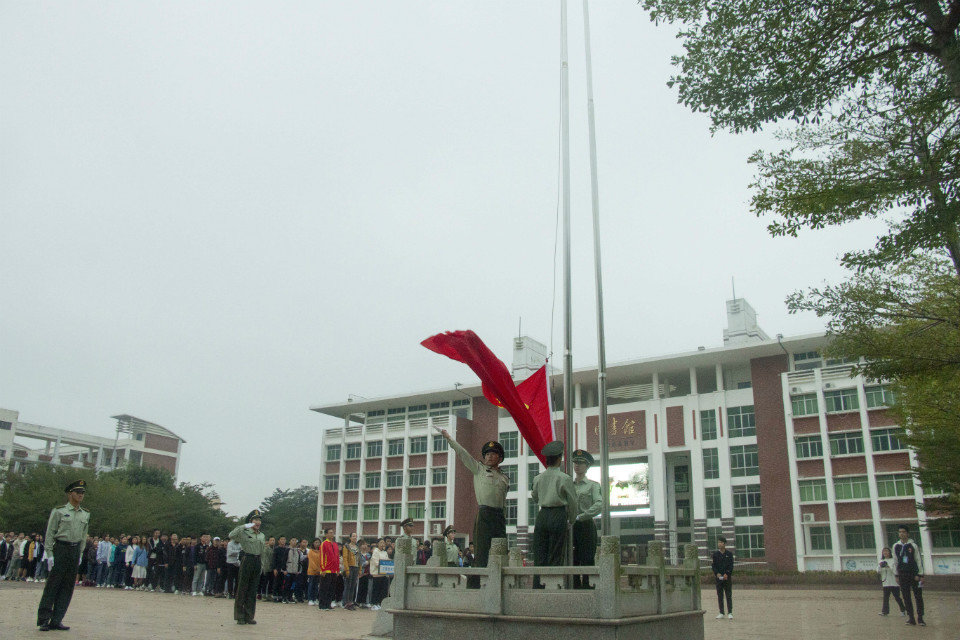 升旗仪式礼毕后,员工干事代表谭超铨上台发言,提出要爱国强国,团结一致。随后,党总支书记陈继敏书记上台发言。党总支书记陈继敏在讲话中总结了过去1个多月的表现,提到17级同学要提高出勤,18级同学要继续保持出勤。同时对全体同学提出要遵守校规,努力学习,在期末考试中取得好成绩,做到不挂科。