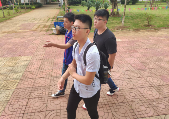 在迎新现场,员工会和代班及志愿者们不停地穿梭在校道上,热情细心地引导新生完成报到流程,帮助新生搬运行李,并积极介绍校园环境和老员工活经验。