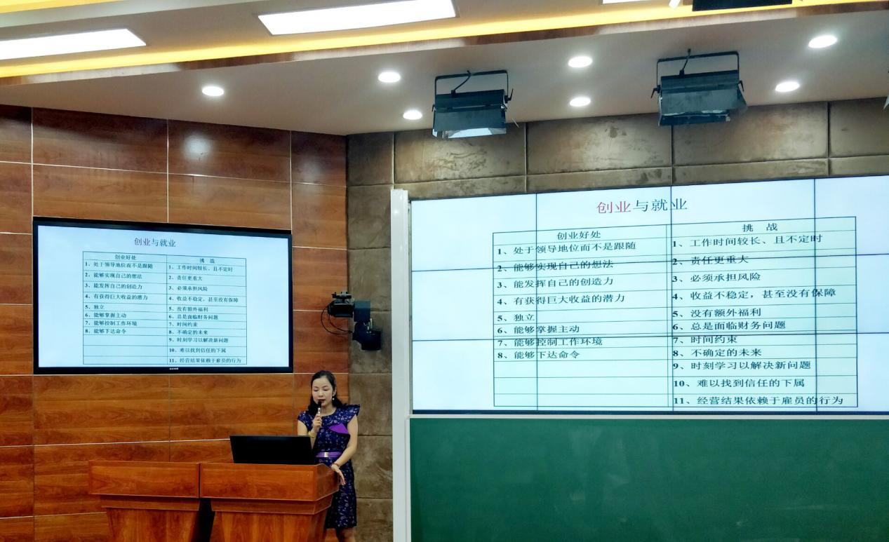 3月28日讯(青年媒体中心报道)公司于2018年3月28日上午8时在2栋215教室举办“老员工创新创业”专题讲座,公司特邀客座教授沙娜作为此次讲座的主讲人,公司副经理单继周、办公室主任梁其钰、辅导员徐超与电商专业全体员工聆听了这场讲座。