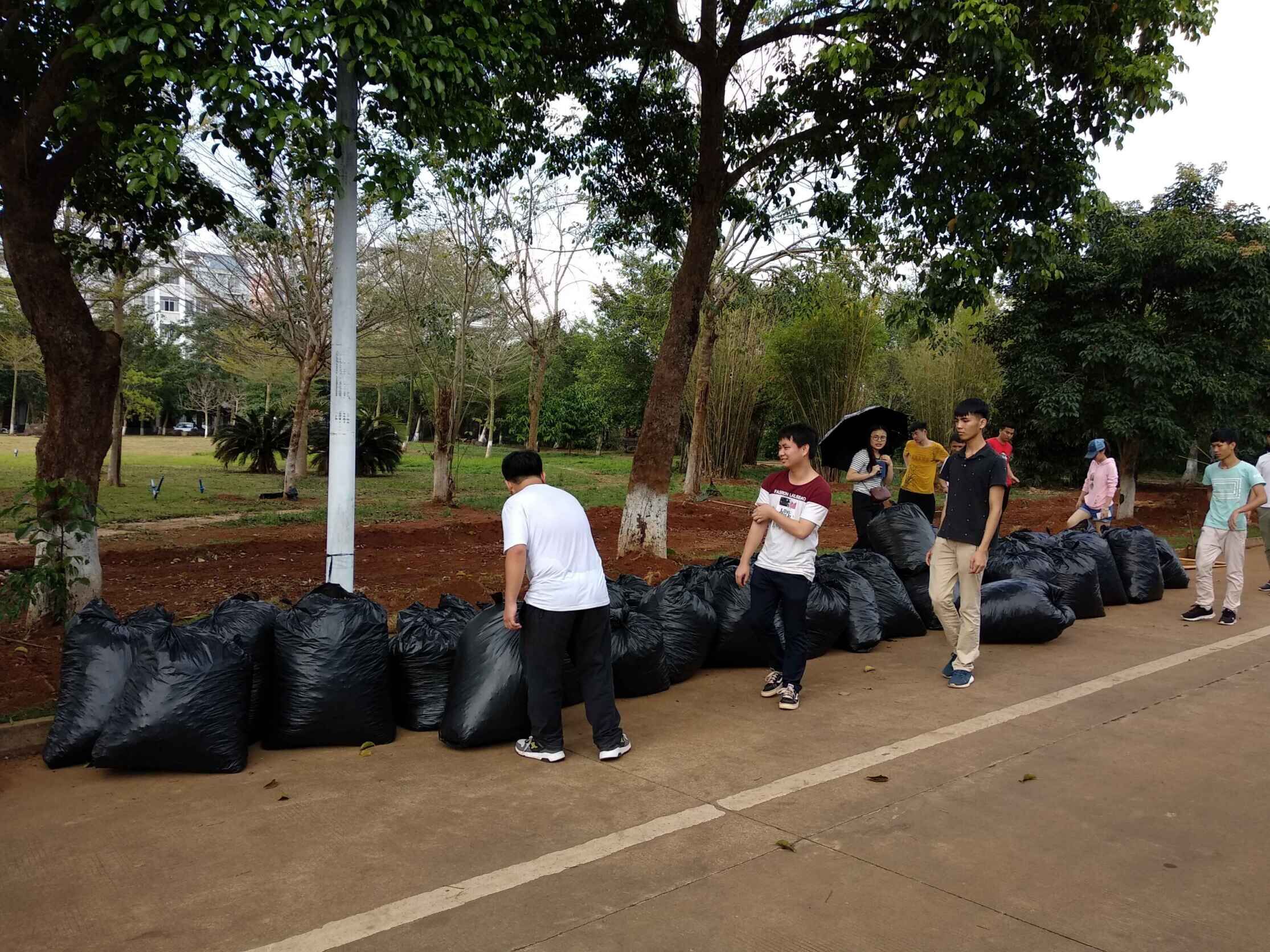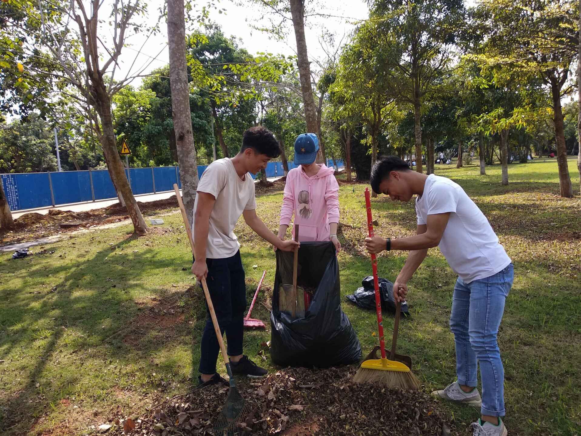 本次劳动竞赛主要是将公司的校内卫生责任区内草坪的杂草、落叶、烟头等垃圾进行及时清理,辅导员周恺按照各班人数进行了责任区域划分,并将劳动竞赛的要求和注意事项进行了说明,同学们便立即开始了行动。在各班班长的带领下,大家都领取了各自的劳动工具,分工合理,目的明确,活动开展的秩序井然。女生主要负责帮忙拎袋子,男生利用耙子、簸箕等工具,先将落叶与垃圾清扫至一堆,最后将垃圾袋装满后捆好放置在指定区域。活动过程中,他们互相帮助,不怕苦,不怕累,在全体同学们两个半小时的辛苦努力下,卫生责任区域焕然一新。