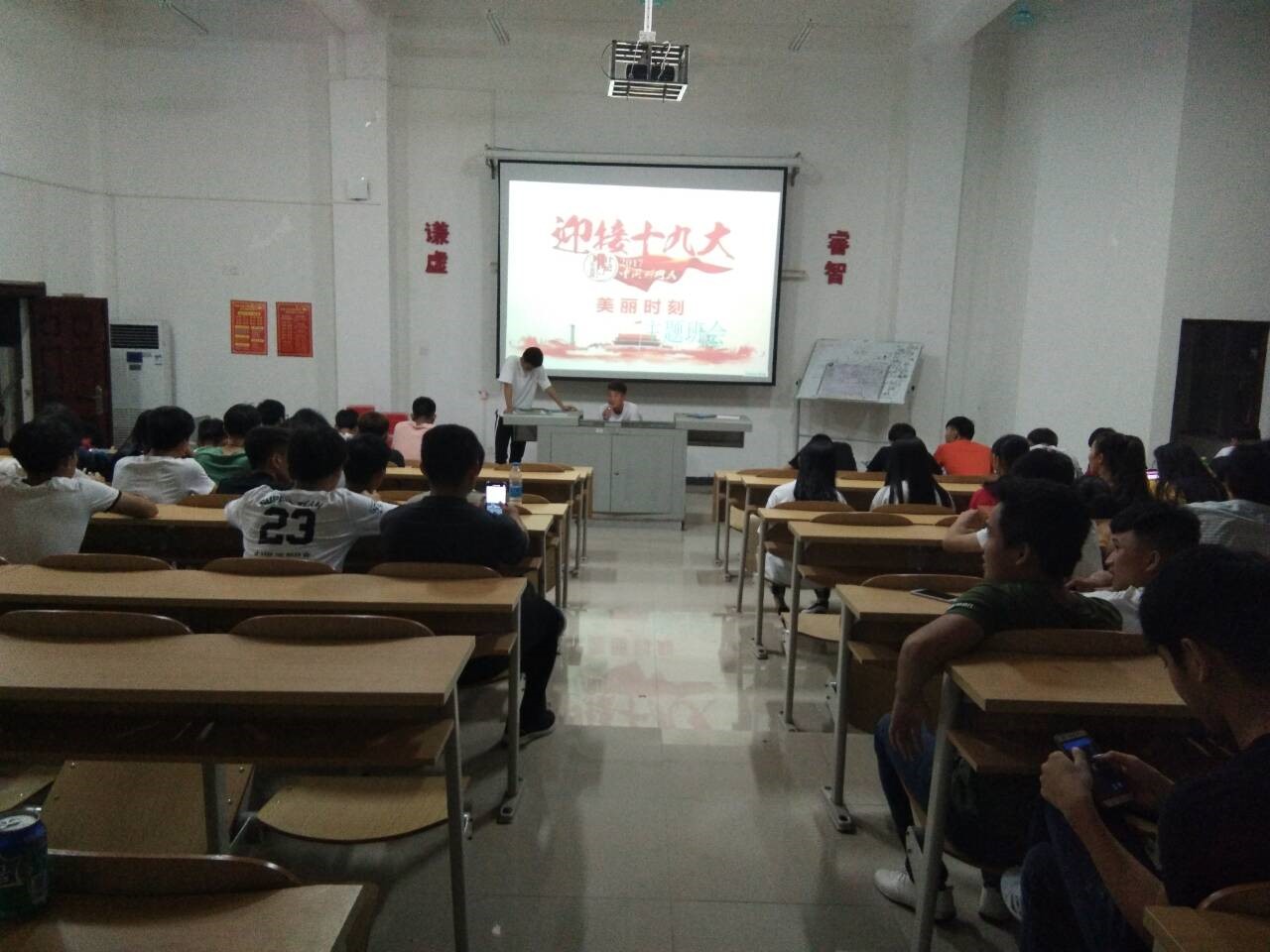 为了更好的宣传十九大的精神,深刻理解十九大精神的含义,同时庆祝十九大的胜利召开,在工程技术公司团总支的指导下,于10月24日各班班委在各自的班级举行了一场喜迎十九大的主题班会,各班级的同学们积极参与,各年级辅导员也在班会现场巡视,对班会内容,思想进行指导。