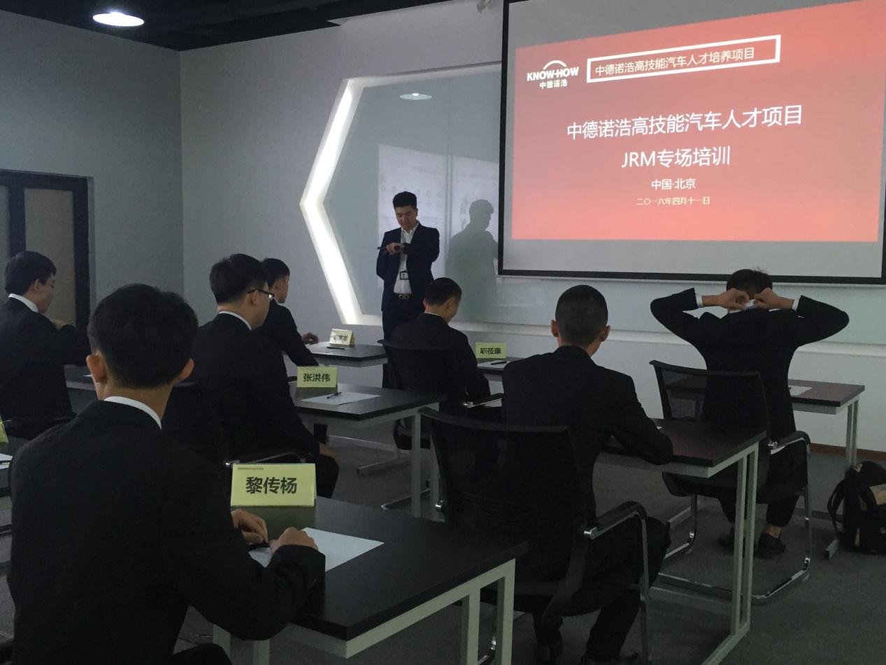 据悉,为保证顺利征战各国的赛事,此次保时捷JRM赛车队全国共招募4名技师,全部从中德诺浩合作院校中挑选。从4月4号开始,分初试、复试和现场面试三轮,公司黎传杨同学凭借扎实的专业技能、熟练的操作技术及良好的沟通协调能力顺利取得全国8进4的最终轮现场面试资格。4月10日,公司委派专业教师陈明陪同黎传杨同学前往北京参加现场面试,陈明老师全程跟踪,给予了技术指导,经过3天的紧张角逐,黎传杨同学以优越成绩通过保时捷JRM车队最终轮考核,并受到车队技术总监的赞赏,取得签约技团队格。