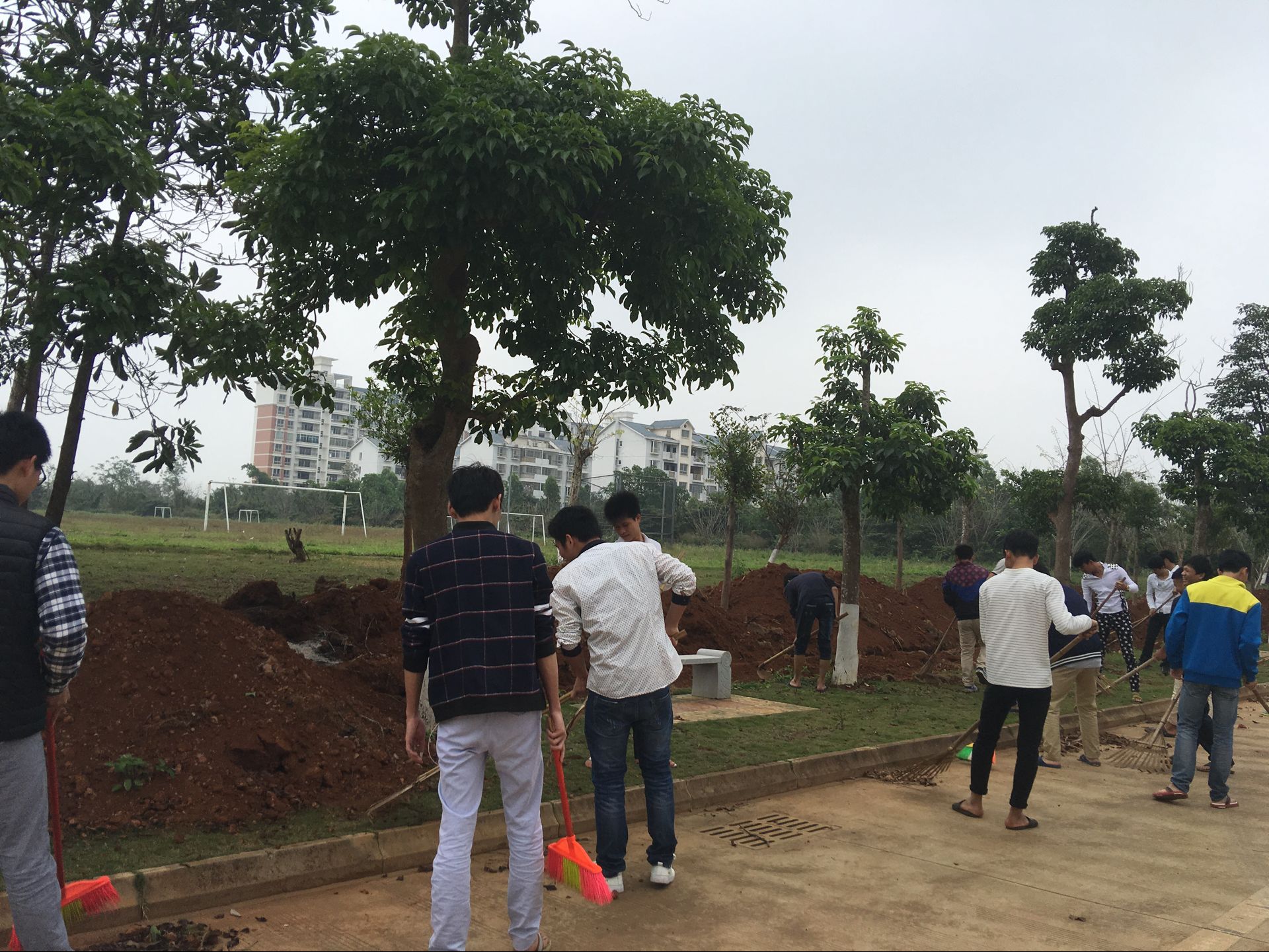 到达指定位置后,大家拿起扫帚、垃圾铲、垃圾桶等工具,有的扫地、有的拔草、有的捡垃圾,认真打扫路面以及草坪中的枯枝败叶,仔细清除“藏”在绿地中及路边的塑料袋、废纸屑、碎砖块等杂物,最后将垃圾运到路边的大垃圾桶里。员工们个个干劲十足,干得热火朝天,汗流浃背。经过大家的齐心协力,通过一两个小时的奋战,终于将指定的区域变得干净亮丽起来,看到焕然一新的环境,大家都乐呵呵的,并拿出手机拍照留念。