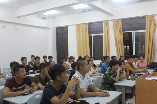 接着专业指导老师向同学们在学习方面提出四点比较有建设性的意见:1,做好职业生涯设计,为使三年后的自己有一个比较满意的职业,在大一刚开始就应该分析自己的兴趣点,为将来的职业做好准备;2.培养自主意识,包括自我管理与自主学习;3.培养综合能力,包括学习能力、想象能力、人际交往的能力及创造、创新能力;4.训练职业素养,虽然新生刚刚开始军训,还没开始接触到专业知识的学习,但是要时刻培养自己对所学专业的兴趣。同时老师给同学们提供了一些网络资源,方便同学们利用闲余时间掌握一些更为广泛的知识。