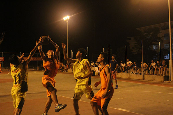 随后由14网络2班球员们向15级的新生们组成的球队发出邀请而进行了一场友谊赛。赛场上,同学们都谨记比赛宗旨,充分展现了同学们积极向上的精神风貌。在金秋的季节里,在皎洁的月光下,同学们的激情在此燃烧。