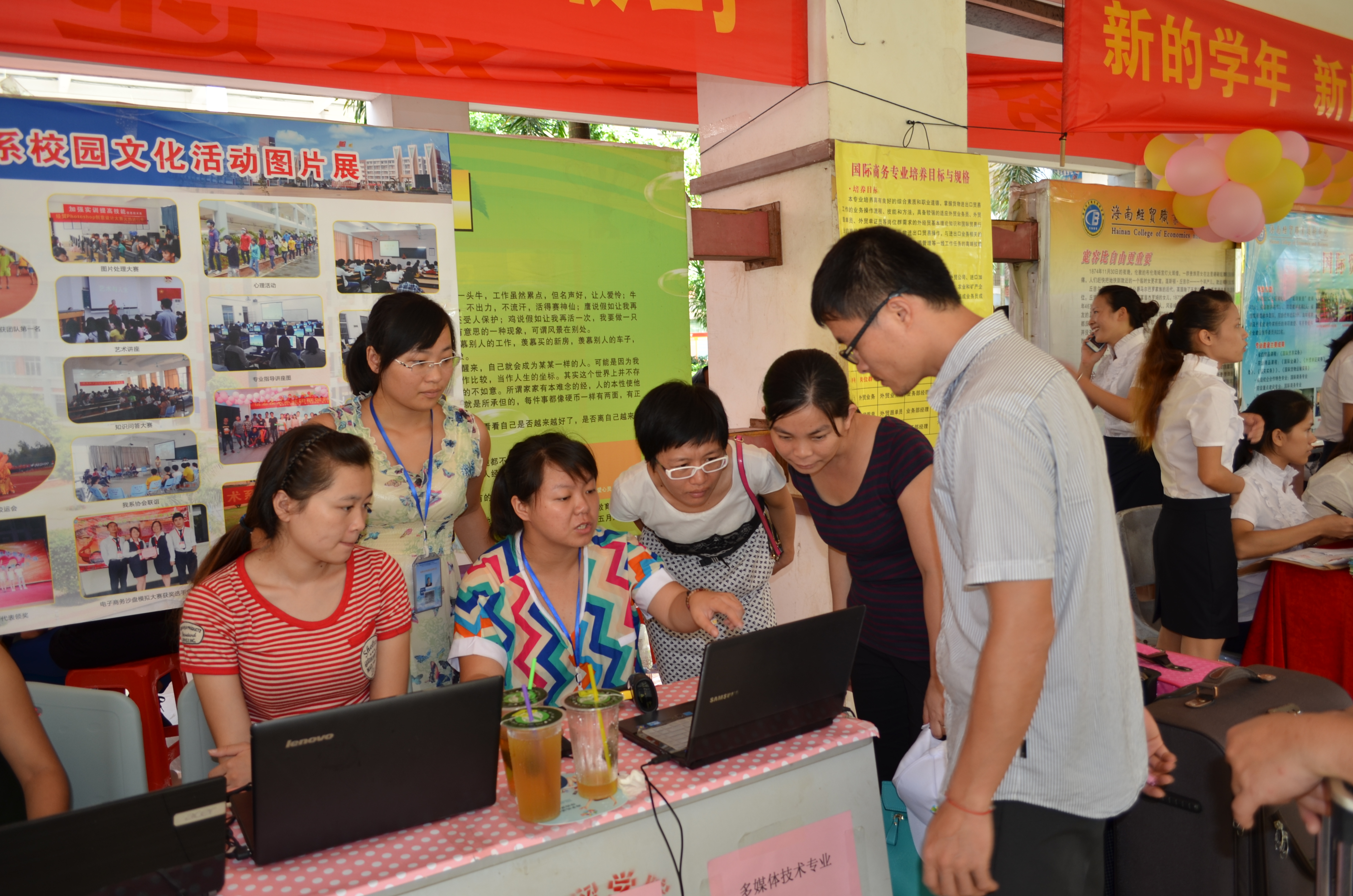 各项工作在怡人的天气里有条不紊地顺利进行,迎新的第一天信息技术系已接待几十位新生和新生家长。