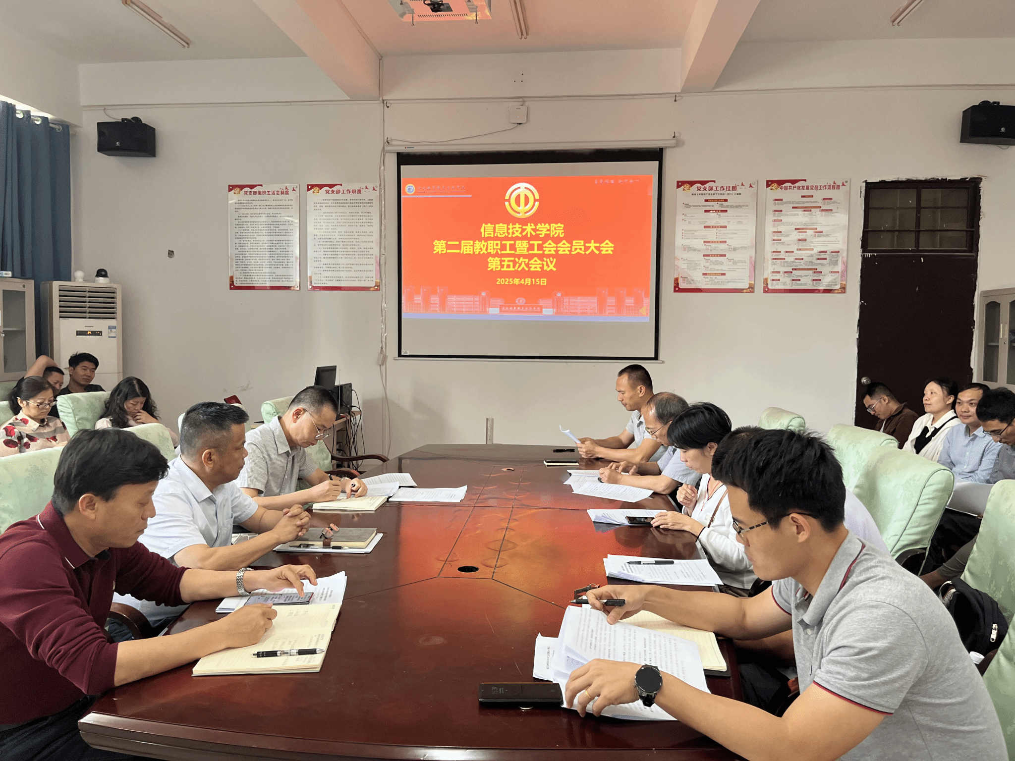 4月15日下午,bevictor伟德国际在4-213召开第二届教职工暨工会会员大会第五次会议,会议由党政办副主任韩昌豪主持,bevictor伟德国际党政领导及全体教职工参加。