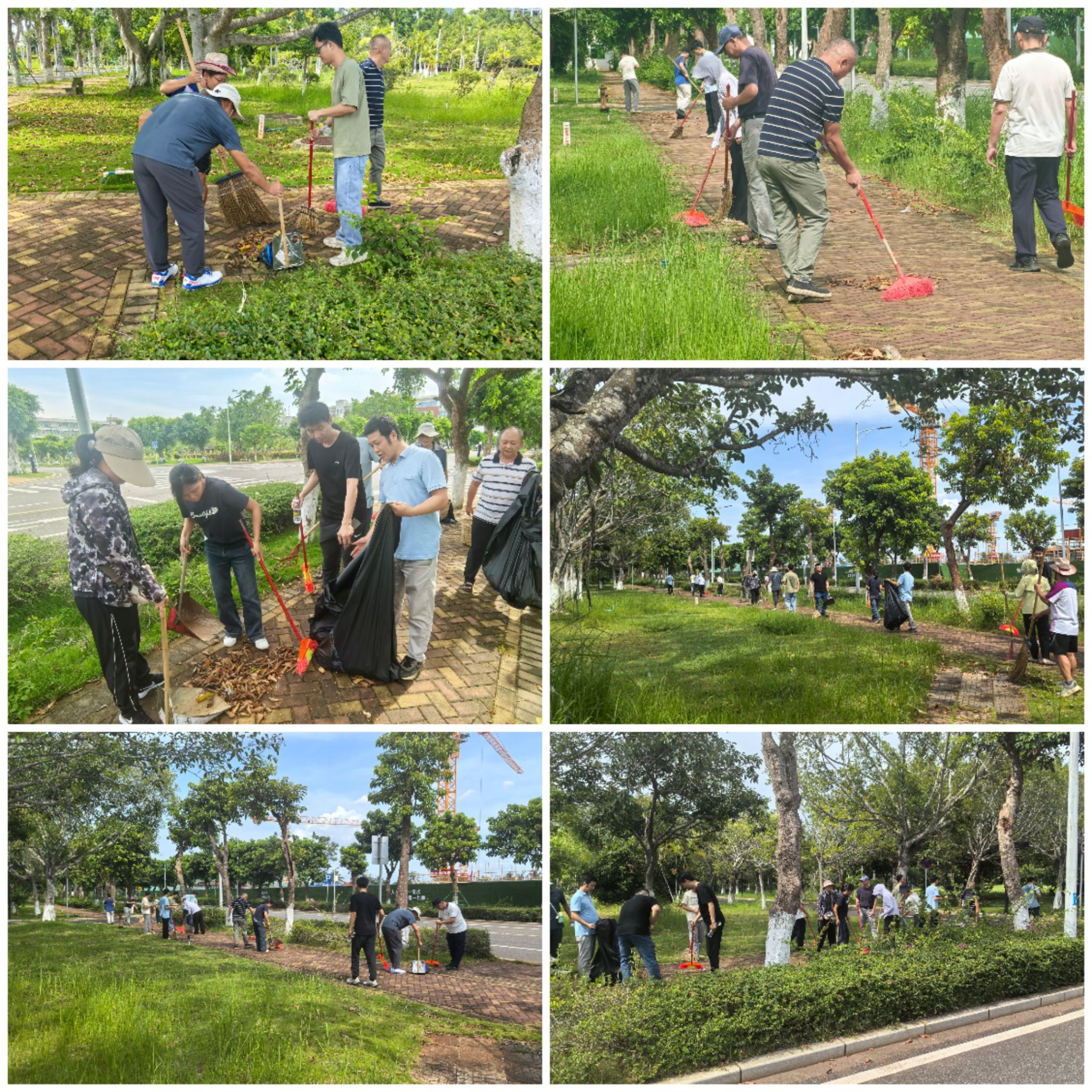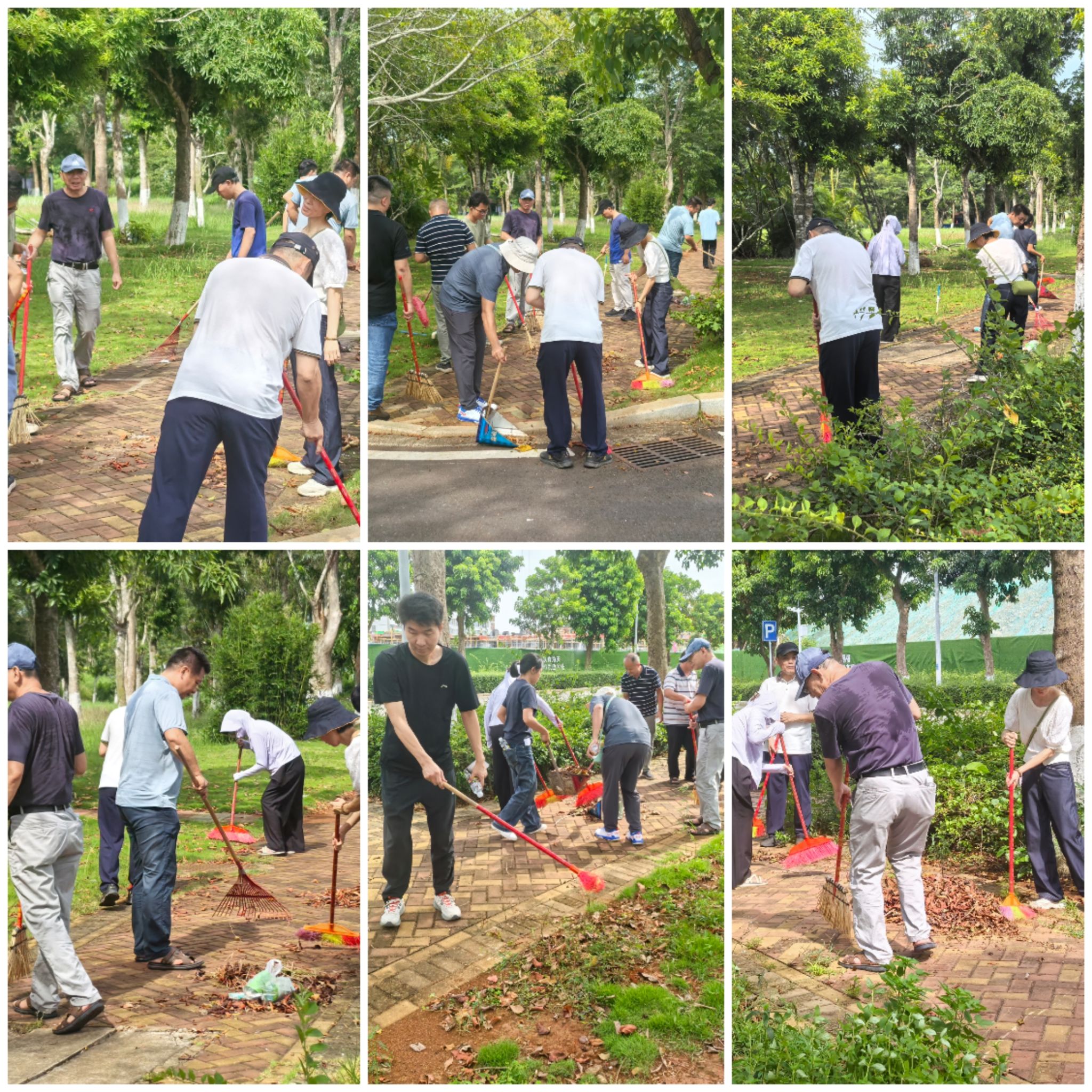 活动现场分工有序,教职工们专注地清扫着路面及绿化带里的落叶,仔细清理每一处卫生死角,每个人都干劲十足,用实际行动为校园洁净贡献力量。经过一番辛勤劳动,负责区域的落叶被清理得干干净净,环境焕然一新。活动最后,全体参与教职工合影留念,定格下这一充满意义的瞬间。