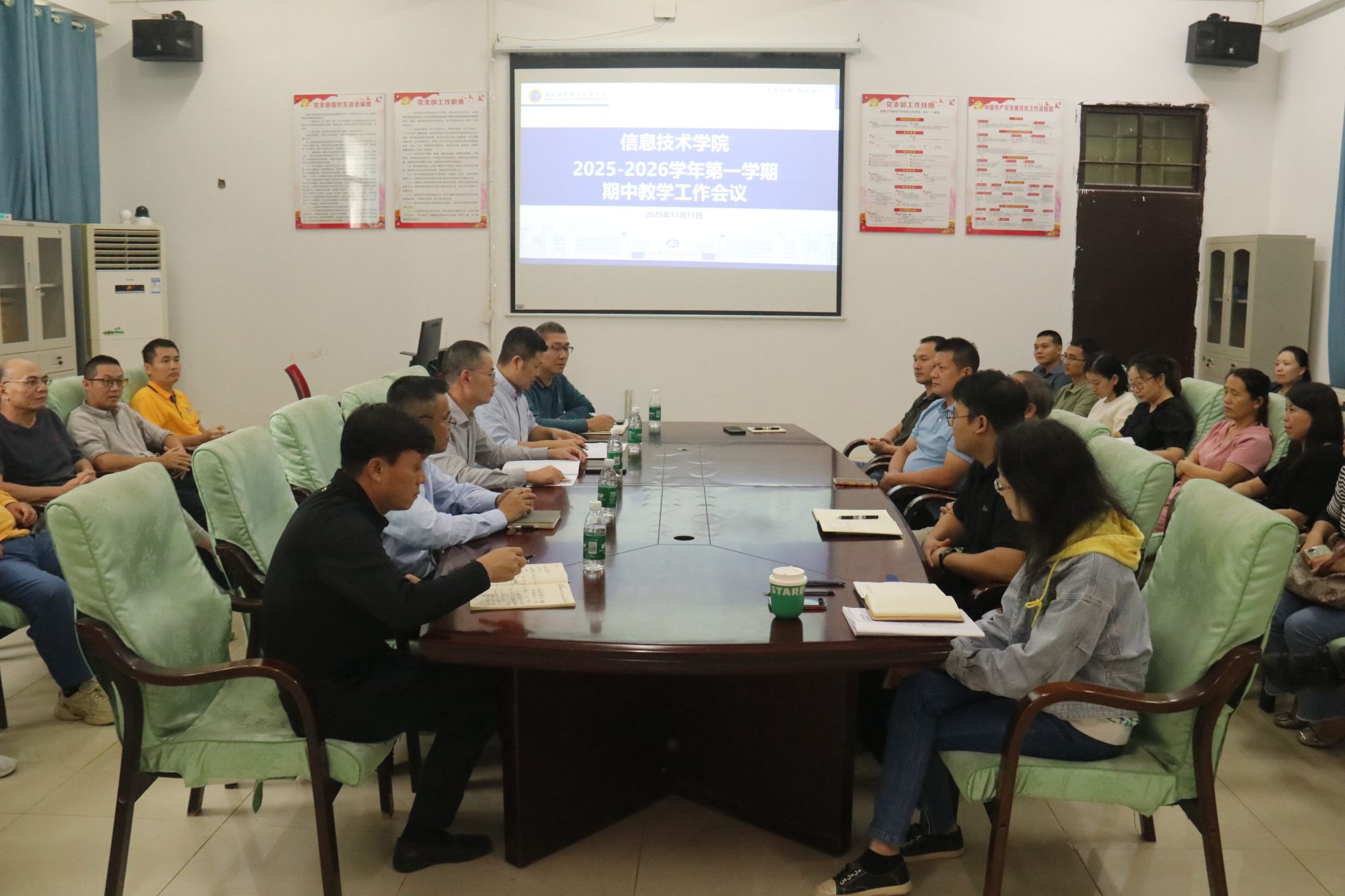11月11日下午,bevictor伟德国际在4-213教室召开2025-2026学年第一学期期中教学工作会议。会议由党政办负责人韩昌豪主持,bevictor伟德国际全体教职工参加。