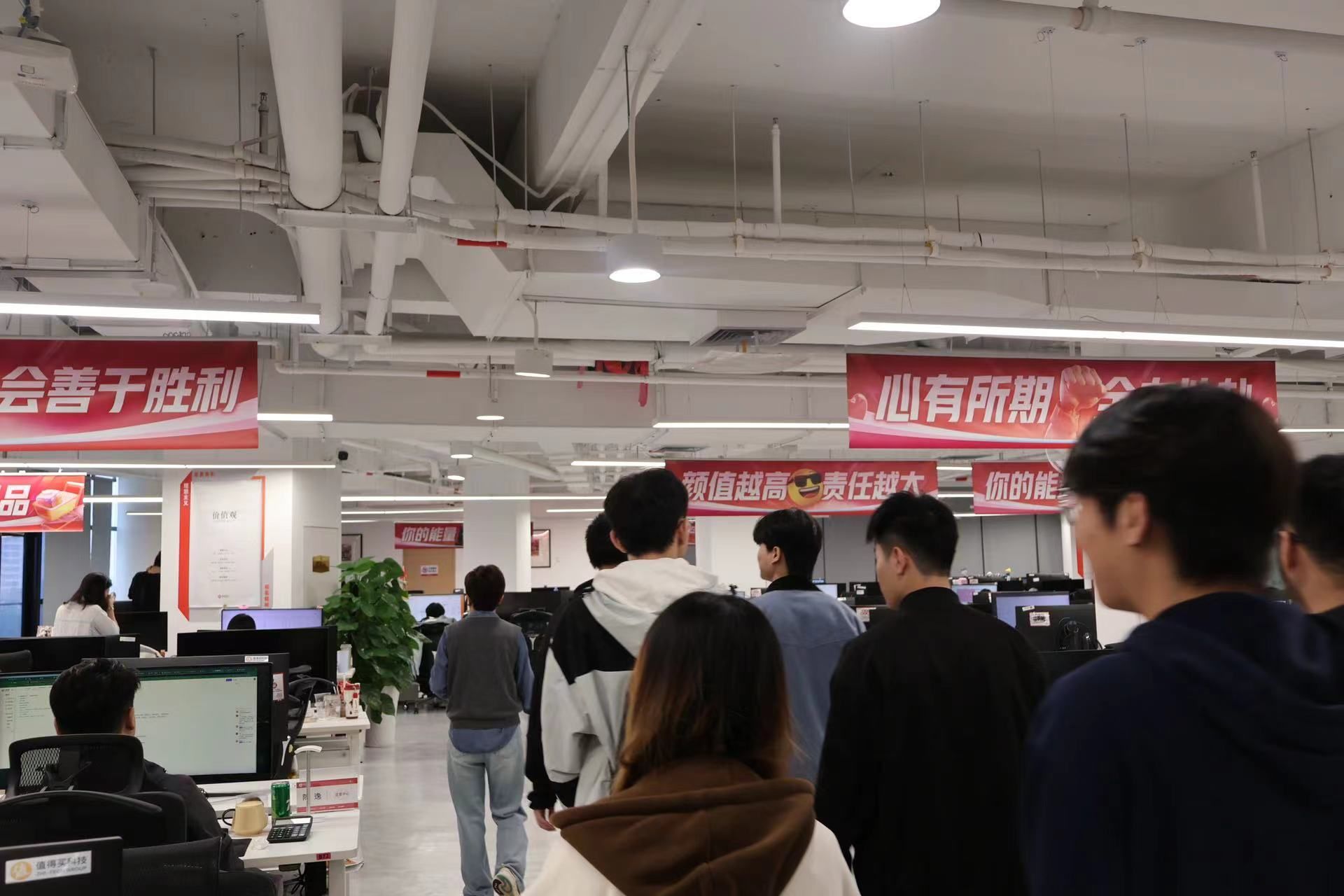 员工们走进值得买科技办公区域后,公司负责人现场讲解了企业的业务范围、核心产品及行业发展前景,从电商导购平台的运营逻辑到数字化营销的技术应用,让大家对互联网科技企业的实际工作场景有了直观认知。