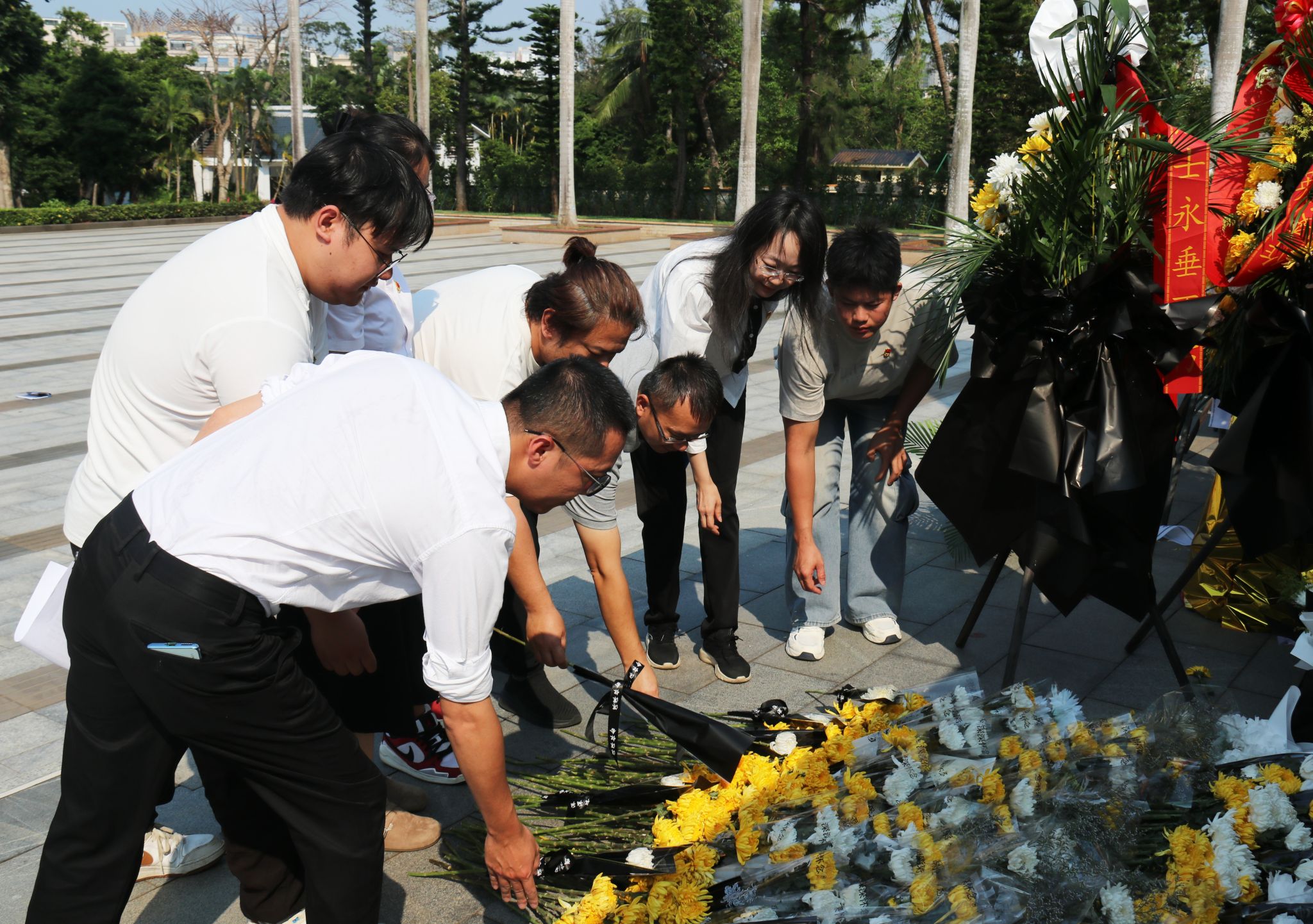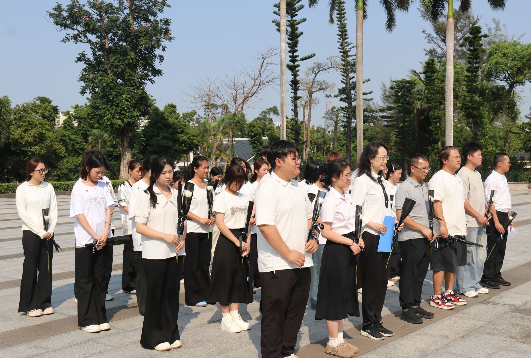 金牛岭公园松柏苍翠、庄严肃穆。在革命烈士纪念碑前,全体人员首先肃立默哀,深切缅怀为解放海南英勇献身的革命先烈,师生依次敬献鲜花,以朴素庄重的方式,寄托对英烈的无限哀思与崇高敬意。