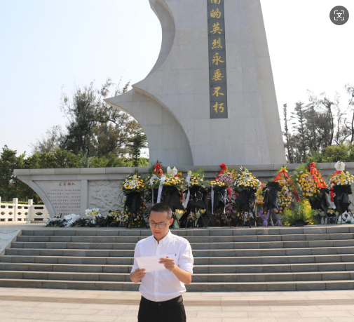 随后,党员教师代表以缅怀先烈、传承精神、担当使命为主线,为现场师生讲授一堂生动的户外微党课。党课结合海南解放历史与自贸港建设实际,回顾革命先烈为民族解放事业抛头颅、洒热血的英勇事迹,讲述海南自贸港封关运作以来的发展成就,引导师生从红色历史中汲取奋进力量。