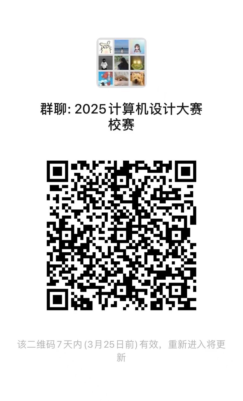 (一)参赛报名:3月25日之前加入校赛微信群:2025计算机设计大赛校内选拔赛,填写在线报名文档。